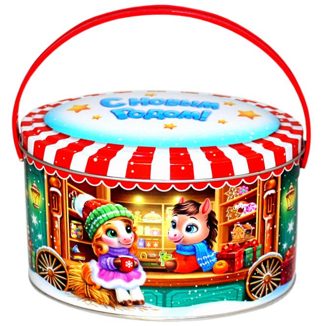 Детский новогодний подарок в жестяной упаковке весом 600 грамм