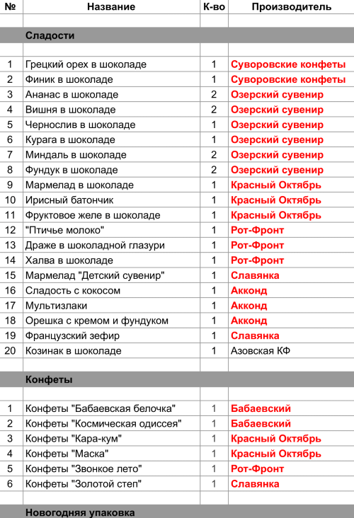 Мармелад в шоколаде (1 шт), Ирисный батончик (1 шт), Фруктовое желе в шоколаде (1 шт), Конфеты "Кара-кум" (1 шт), Конфеты "Маска" (1 шт)